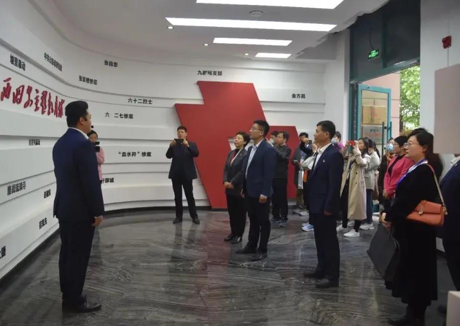 4月24日下午,领导、专家及各位参会人员一行人到聊城职业技术学院参观“三馆一路”(鲁西“四史”主题教育馆、生命科学馆、网络安全馆、长征路教学实践点)。