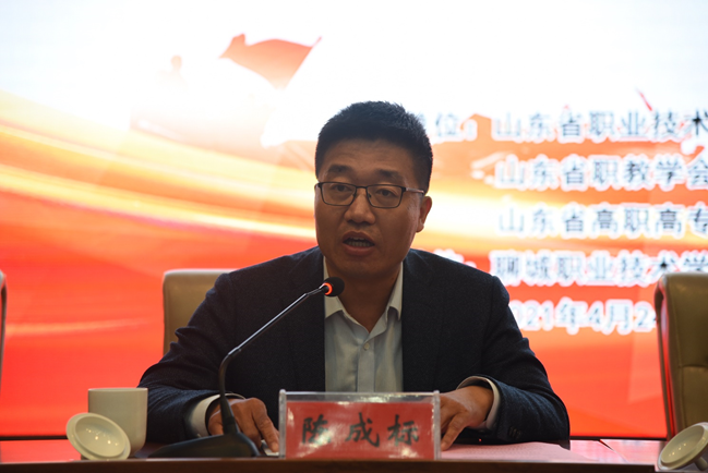 陈成标代表省委教育工委、省教育厅向组织本次会议的职教学会思政课程与课程思政研究分会以及聊城职业技术学院表示感谢。他结合党史学习教育指出,思政课教师是先进思想文化的传播者、党执政的坚定支持者、学生健康成长的指导者。思政课老师一定要正确认识和对待党的历史,认真学习和把握党的思想。他勉励新时代的思政课教师抓住历史机遇,乘势而上、奋发有为,为培养建设者和接班人贡献更多力量。
