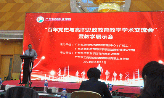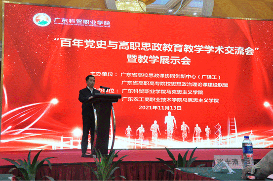 11月13日,由广东省高校思政课区域协同创新中心(广东轻工职业技术学院)、广东省高职高专院校思想政治理论课建设联盟主办,广东科贸职业学院马克思主义学院、广东农工商职业技术学院马克思主义学院联合承办的“百年党史与高职思政教育教学”学术交流会暨教学展示会在广东科贸职业学院清远校区成功举办。全省共100多名马克思主义学院院长与骨干教师代表参加了本次会议。
