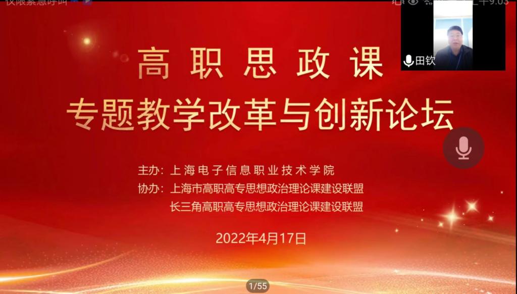 为推进全国高职思政课专题教学改革与创新,4月17日上午,由上海电子信息职业技术学院主办,上海高职高专思政课建设联盟、长三角高职高专思政课建设联盟协办的全国高职思政课专题教学改革与创新论坛在线上召开。来自全国多个高职院校的300多名思政课教师参加了会议。会议由上海电子信息职业技术学院马克思主义学院直属党支部副书记江龙主持。