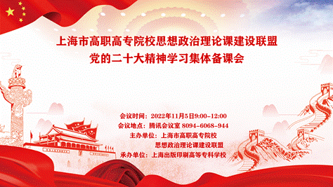 为深入贯彻中国共产党第二十次全国代表大会精神,深刻领悟习近平新时代中国特色社会主义思想,上海市高职高专院校思想政治理论课建设联盟于2022年11月5日线上举办党的二十大精神学习集体备课会。上海市教委德育处朱敏处长、学校党委书记顾春华、上海交通职院校长董晓峰、上海农林职业技术学院党委书记蔡红、上海南湖职院校长朱建柳、上海工商外国语学院党委副书记段仁启、上海电子信息职业技术学院副书记、纪委书记毛玉婷、上海旅游高等专科学校 党委副书记、副校长卫茹静,以及上海市各高职高专院校马院院长,思政部、社科部主任,思政课教师156人参加了集体备课会。