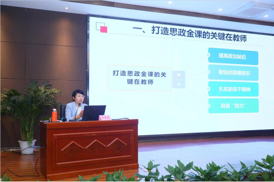 4月11日下午,教育部思想政治理论课教学指导委员会“高职高专”分教指委委员、山东商业职业技术学院马克思主义学院院长王岳喜以《打造思政金课 培育时代新人》为题作专题报告。王岳喜强调打造思政金课关键在教师、依据在学生,以《峥嵘-党史情景沙盘》思政金课为指引,指出思政金课增质的根本在方法,并为打造思政金师提出指导意见,为新时代锻造可信可敬可靠、乐为敢为有为的思政课教师队伍提供了思路。