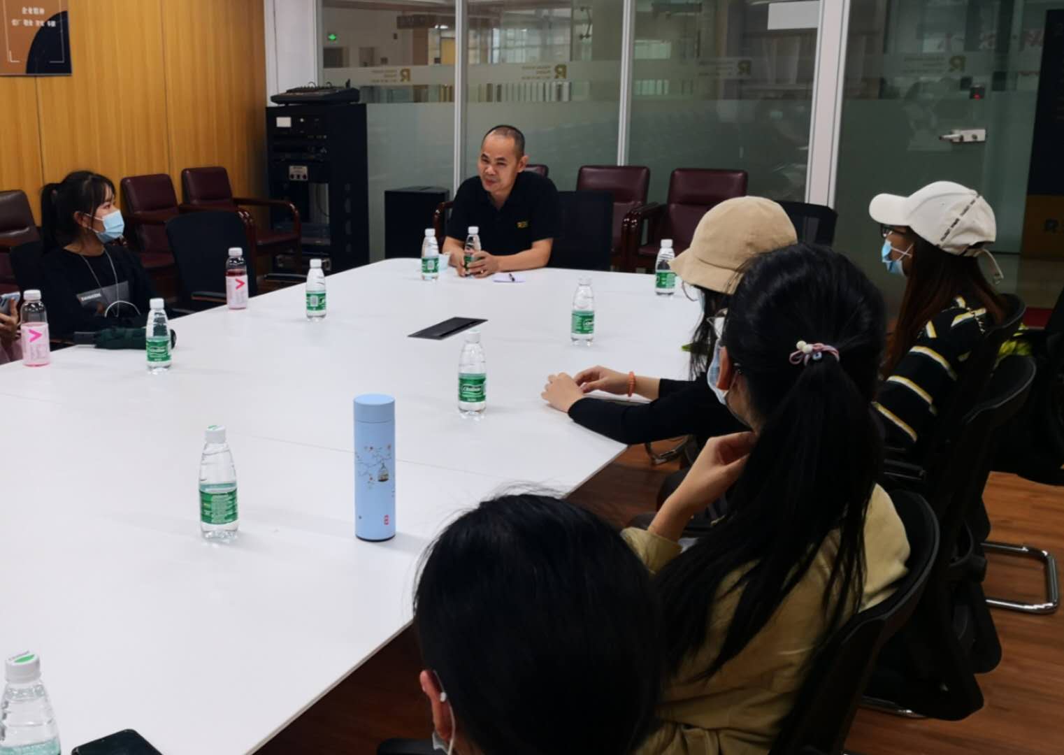 图一:听技术员讲解钢琴生产原理