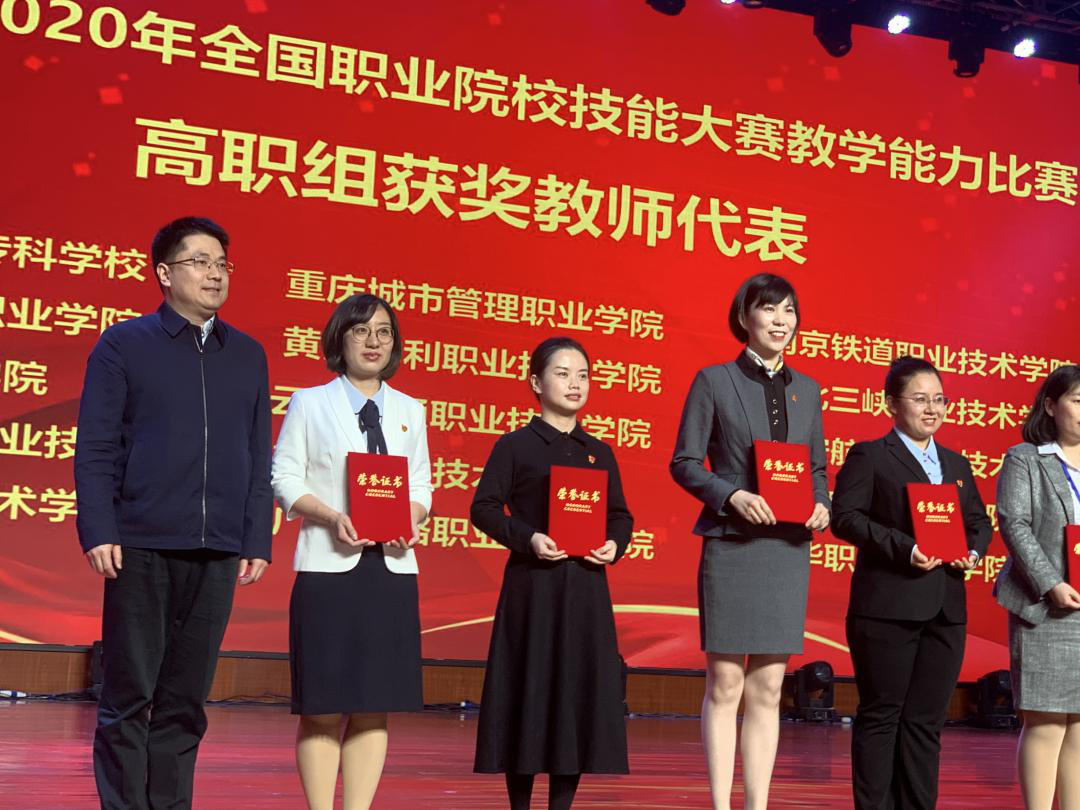 全国职业院校技能大赛教学能力比赛作为教育部举办的唯一面向全国职业院校的教师教学赛事,在全国职业院校有着广泛的影响。大赛一共收到来自地方37个代表队和军事职业组的985件参赛作品,来自全国的参赛选手参与角逐。经网络初评和现场决赛,中职组、高职组共产生一等奖82个,二等奖185个,三等奖258个;经中央军委训练管理部院校局组织评审,军事职业组共产生一等奖8个,二等奖16个,三等奖24个。重庆城市管理职业学院教师严红、蒋弦、张燕霞、马璨组成的参赛团队,荣获高职组公共基础课程组一等奖,并作为高职组代表上台领奖。