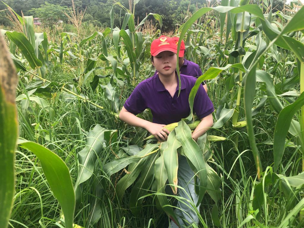 纸上得来终觉浅,绝知此事要躬行。7月20日下午实践队在永安村妇女委员会的带领下,来到永安村田野上,调研当地生产情况。看到村民在采收玉米与西瓜,实践队也撸起袖子帮着一起采收。