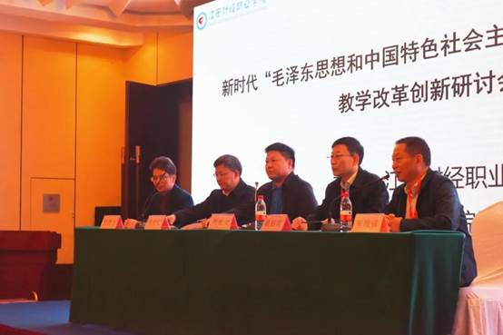 为全面贯彻落实习近平总书记在学校思想政治理论课教师座谈会上的重要讲话精神,落实中共中央办公厅、国务院办公厅《关于深化新时代学校思想政治理论课改革创新的若干意见》要求,深入推进高校思政课教学改革创新,推动习近平新时代中国特色社会主义思想进教学内容、进课堂、进学生头脑,2021年10月22日至25日,江西财经职业学院举办新时代“毛泽东思想和中国特色社会主义理论体系概论”课教学改革创新研讨会。来自全国39所高校的126位马院院长(思政部主任)和思政课教师线下参加研讨会。江西财经职业学院党委副书记、校长刘彪文出席开幕式并致辞。