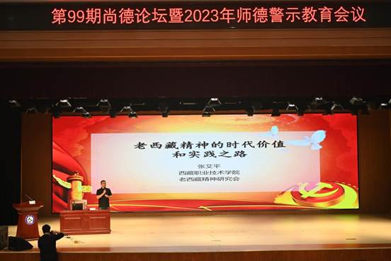 9月5日,《尚德论坛》第99期专家报告会在山东商业职业技术学院召开,西藏职业技术学院马列教研室主任、老西藏精神研究会会长张艾平副教授受邀作精彩报告,山东商业职业技术学院党委领导班子成员出席,党委副书记宋超主持,全体教职工参加。