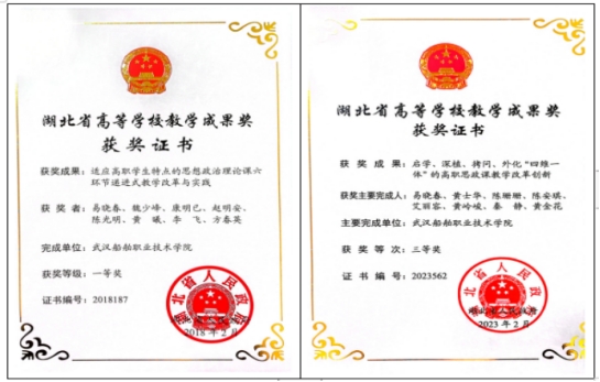 继2018年学校思政课教学改革项目获湖北省高等学校教学成果一等奖后,为贯彻落实习近平总书记“3·18”重要讲话精神,该校启动新一轮思政课改革,创新提出并实施“四维一体”高职思政课教学改革,从“启学”、“深植”、“拷问”、“外化”四个教学实践维度一体化构筑思政课教学体系,推进教材内容向教学内容的转化。改革项目获湖北省高校教学成果奖三等奖。