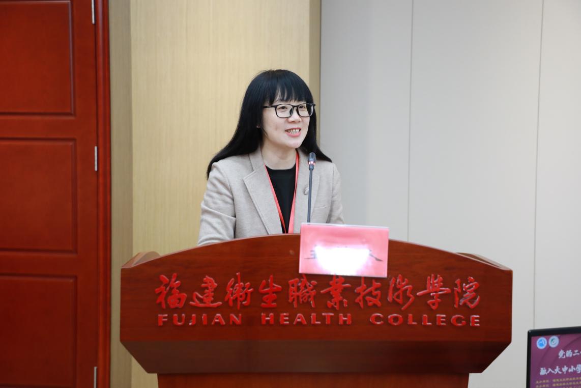 (图:福建卫生职业技术学院马克思主义学院党总支书记、院长熊美兰主持活动)