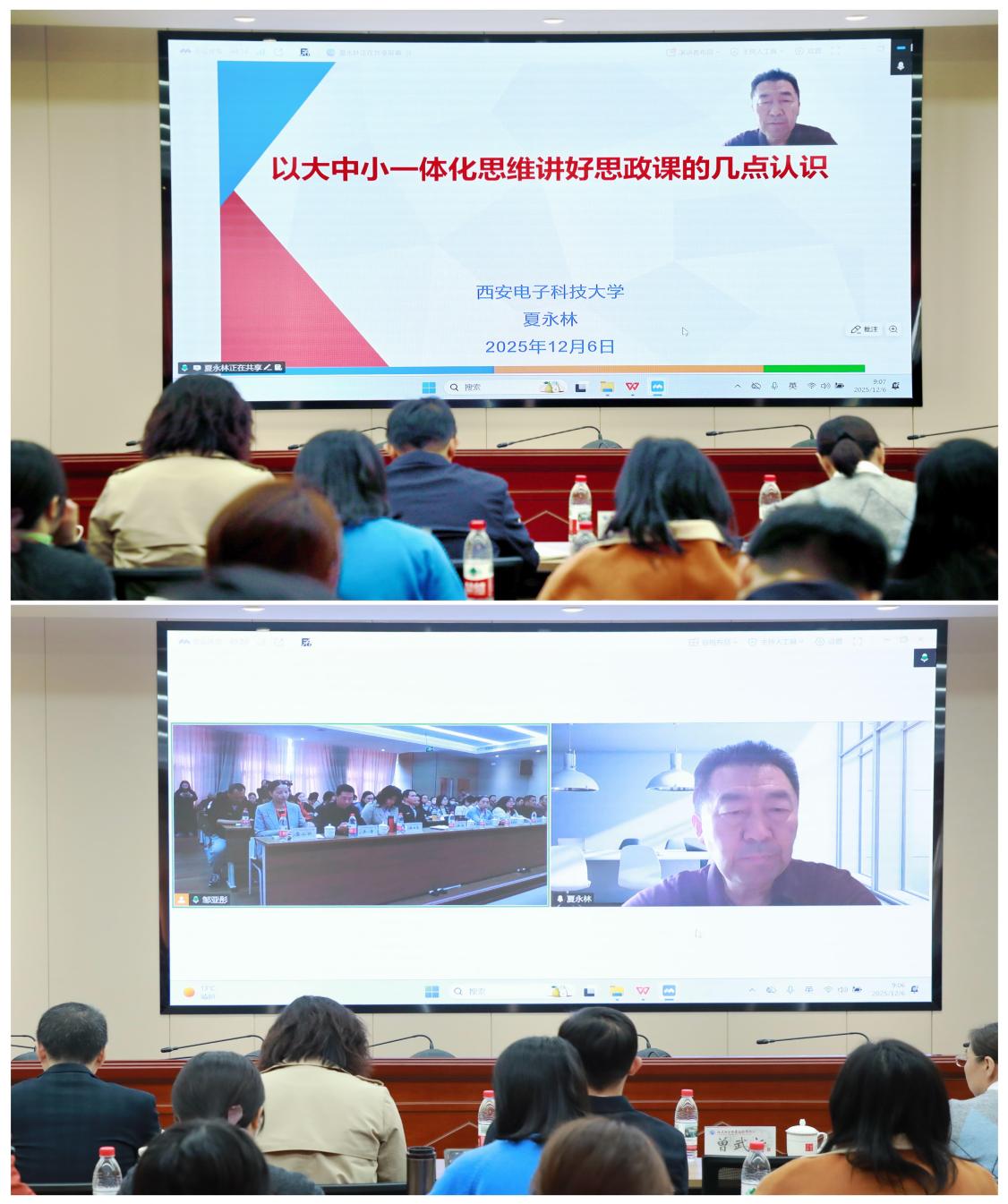 全国网络教学名师、西安电子科技大学夏永林教授作题为《以大中小一体化思维讲好思政课的几点认识》的主旨报告。报告从“一体化的由来、关键与实践路径”三个维度展开,系统阐释了大中小学思政课一体化是遵循认知规律、教育基本规律和思想政治教育规律的必然要求。参会教师受益匪浅,纷纷表示,将把一体化育人思维融入教学设计,立足学段特点,深挖文化资源,让思政课真正走进学生心灵。