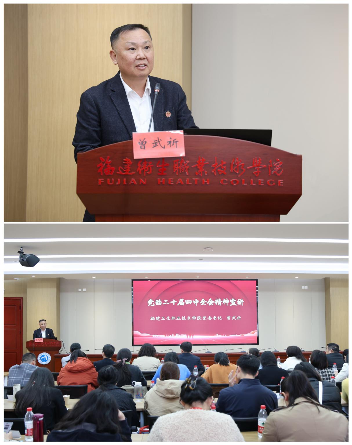 (图:福建卫生职业技术学院校党委书记曾武祈作党的二十届四中全会精神宣讲)