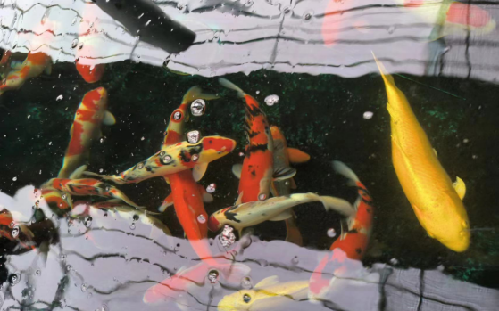甲:这里的鱼儿不简单,乙:这水塘里的鹅卵石更是不一般。丙:到底是哪里不一样,(加上夸张的动作)左瞧瞧又看看。