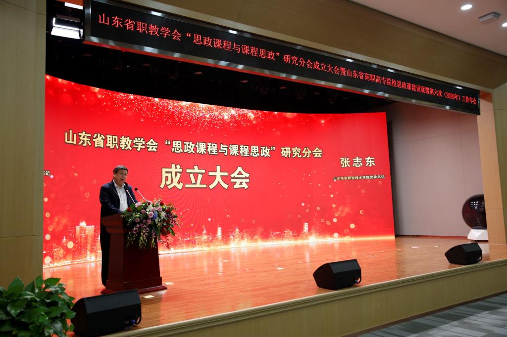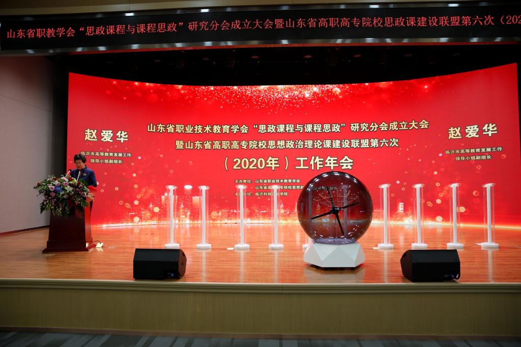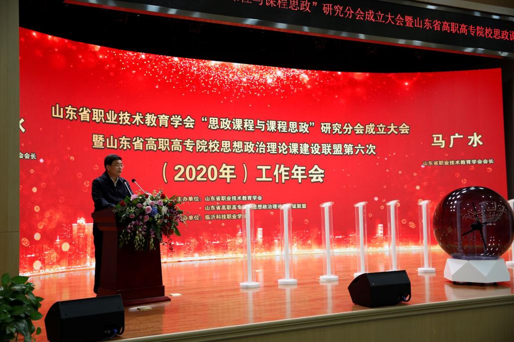 2020年10月30日—10月31日,由山东省职业技术教育学会、山东省高职高专院校思政课建设联盟主办,临沂科技职业学院承办的山东省职教学会“思政课程与课程思政”研究分会成立大会暨山东省高职高专院校思政课建设联盟2020年工作年会在临沂人才学术交流中心顺利召开。山东省委教育工委副书记、省教育厅副厅长冯继康,山东省职教协会会长马广水,临沂市高等教育发展工作领导小组副组长赵爱华,山东省教育厅思政处处长陈成标,以及来自全省70多所高职高专、中专、技师学院的各级领导和思政课程与课程思政骨干教师230余人参加。