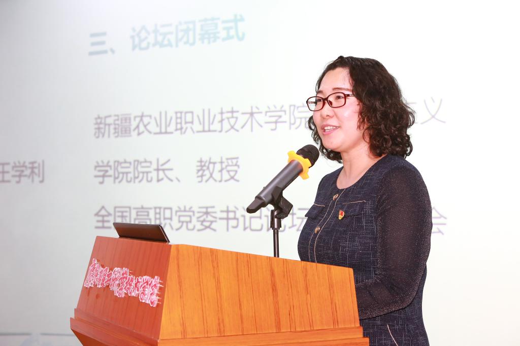 会上,下一届高职高专思政课青椒论坛的承办单位,新疆农业职业技术学院的教师代表李晓瞳作表态发言,她欢迎高职高专思政课专家、青年学者到大美新疆继续思政课“论道”之旅,表明有决心、有信心、有能力承办好下一届青椒论坛。