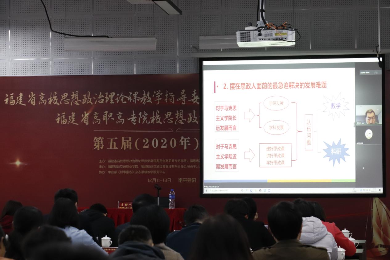 近日,2020年福建省高校思想政治理论课教学指导委员会高职高专分委会工作会议、福建省高职高专院校思想政治理论课建设联盟第五届工作年会在福建船政交通职业学院武夷职教园顺利召开。省委教育工委思政处领导及全省38所高职高专院校马克思主义学院院长和思政课骨干教师120余名代表参加了会议。
