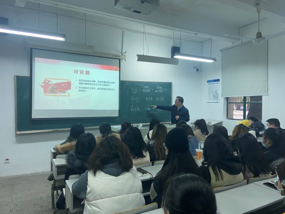 开讲的二节课既有理论的深度,又有贴近学生感受的温度,学生听的认真投入,现场多次爆发学生由衷的掌声。此外,教学环节设计严谨,课件清晰简洁、教态丰富生动,包括板书都体现了扎实的教学功底。与会老师课后表示这次《习近平新时代中国特色社会主义思想概论讲座》课程的开讲不仅是一场堂思政课,也是一场精彩的教学展示课。