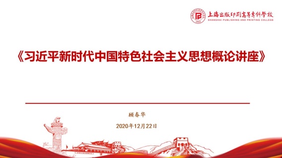 为深入学习习近平新时代中国特色社会主义思想,同时也为深化思政教学改革,推动我校思政课再上新台阶,经过精心筹备,《习近平新时代中国特色社会主义思想概论讲座》课程正式开讲。全国联盟副会长、长三角联盟轮值会长、上海出版印刷高等专科学校党委书记顾春华做开课第一讲。部分专业教师也参加了现场课堂。