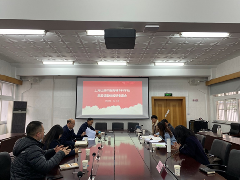 为贯彻落实习近平总书记在党史学习教育动员大会上的讲话精神,切实将党史学习教育融入思政课教学,推动思政课提质增效,3月18日下午,值全国学校思政课教师座谈会召开2周年之际,上海出版印刷高等专科学校召开思政课集体备课会。全国高职高专思政课建设联盟副会长、长三角高职高专思政课建设联盟首届轮值会长、上海出版印刷高等专科学校党委书记顾春华,上海出版印刷高等专科学校党委副书记、纪委书记顾凯,副校长周国明,以及学校相关职能部处领导一起和思政课教师参加了集体备课会。