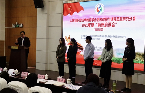 3月28日,由山东省职业技术教育学会“思政课程与课程思政”研究分会、山东省高职高专院校思想政治理论课建设联盟主办,青岛职业技术学院承办的2021年度首届“萌新磨课会”在青岛举行。山东省委教育工委思政处处长陈成标、副处长徐璐,山东省职业技术教育学会会长马广水,山东商业职业技术学院党委副书记侯功海,青岛市委教育工委思政处负责人赵俊杰,青岛职院党委书记王金生、副书记刘甲珉,贵州安顺职业技术学院副院长齐顾涛出席活动。青岛职院党委副书记刘甲珉主持“萌新磨课会”启动仪式。来自“萌新磨课会”9大片区的承办院校负责人,26所省内高职院校、青岛市中高职院校和技师学院的分管思政课教学的负责人和一线青年教师,共计130余人参加活动。