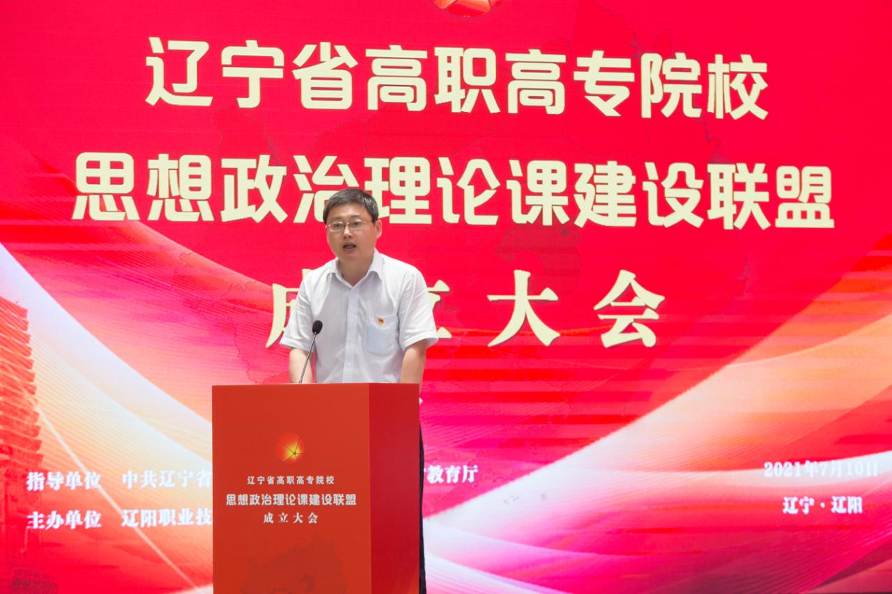 为贯彻落实习近平总书记在学校思想政治理论课教师座谈会上的重要讲话精神,全面落实中央办公厅、国务院办公厅联合印发的《关于深化新时代学校思想政治理论课改革创新的若干意见》,进一步推动辽宁省高职高专院校思政课教学改革创新,在辽宁省委教育工委、辽宁省教育厅指导下,由辽阳职业技术学院牵头,辽宁省高职高专院校思想政治理论课建设联盟成立大会于7月10日在辽阳召开。