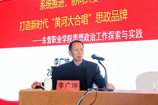 东营职业学院的党委副书记李广坤做《全面统筹,系统推进,打造新时代“黄河大合唱”思政工作品牌》分享