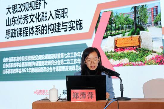 青岛职业技术学院马克思主义学院副院长郑萍萍做《大思政观视野下山东优秀文化融入高职思政课程体系的构建与实施》分享