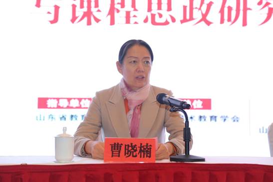 山东商业职业技术学院副院长徐红发表致辞,她指出,一年来,山东省高职高专院校思想政治理论课建设联盟抓住有利契机,聚焦师资队伍和“金课”建设,创新打造思政课程的“萌新磨课会”这一原创品牌,开展了思政课集体备课暨优秀课件评选、“思政课程与课程思政”专项教学改革课题申报、教师实践研修等活动。在省委教育工委和省教育厅的正确领导下,收获了较为丰硕的成果和成绩。接下来,要围绕“培养什么人”,坚持把“德育”摆在重要位置,实现德智体美劳的统一;要围绕“怎样培养人”,坚持把“立德”摆在重要位置,实现立德与树人的统一;要围绕“为谁培养人”,坚持把“接班人”摆在高位,实现接班人与建设者的统一。