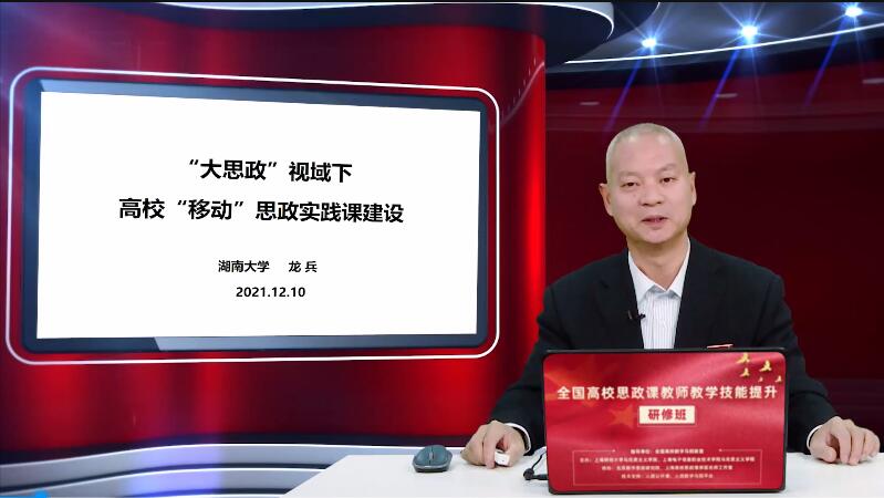 湖南大学马克思主义学院龙兵教授以《“大思政”视域下高校“移动”思政实践课建设》为题,分别从利用历史资源,让思政课堂“活”起来;走向田间地头,让思政课堂“实”起来;注重人文关怀,让思政课堂“亲”起来三方面分享了思政课课堂教学和实践教学有机结合的探索经验。