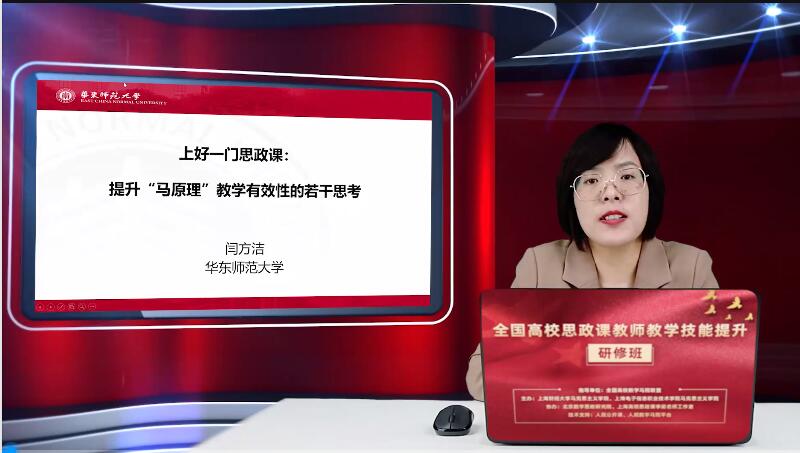 在全国高校思想政治工作会议召开五周年之际,在上海高职高专思政课建设联盟支持下,由上海电子信息职业技术学院马克思主义学院、上海财经大学马克思主义学院联合主办的全国高校思政课教师教学技能提升研修班,从12月16日至21日连续六天通过人民公开课平台以公益直播方式成功举办。