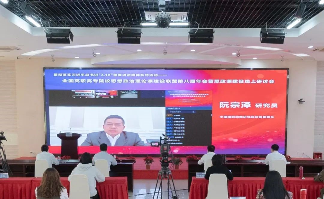 会议邀请中央马克思主义理论研究与建设工程首席专家、教育部高等学校思想政治理论课教学指导咨询委员会委员郑传芳作了题为《学习习近平总书记3.18重要讲话精神 加强中国特色高校思政课建设》的主旨报告;教育部高校思想政治理论课高职高专分教学指导委员会副主任委员、联盟副会长、天津城市建设管理职业技术学院原党委书记张泽玲,教育部高校思政课教学指导委员会“高职高专思政课”分教学指导委员会副主任委员、联盟副秘书长、新疆农业职业技术学院马克思主义学院院长王学利分别作了《学习贯彻<标准>建设“关键课程”一-解读 <高等学校思想政治理论课建设标准(2021年本) >》《办好高职“大思政课”的学理思考与实践探索》专题报告;中国国际问题研究院常务副院长阮宗泽向大会作了《当前国际热点与中国外交》的专题报告交流。