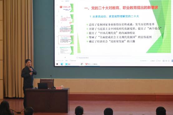 教育部职业教育发展中心原副主任、中国职业技术教育学会德育工作委员会主任刘宝民做《学习贯彻党的二十大精神 落实立德树人根本任务》分享