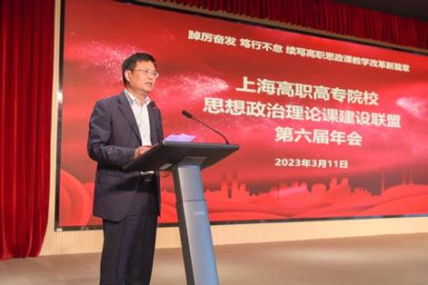 3月11日,上海高职高专思想政治理论课建设联盟第六届年会顺利在上海农林职业技术学院召开。本届年会以“踔厉奋发,笃行不怠,续写高职思政课教学改革新篇章”为主题,全面总结联盟2022年工作,共同展望了2023年工作。上海市教委德育处处长朱敏,上海理工大学党委副书记、纪委书记、上海高校思政课教指委高职分委主任刘道平出席会议,上海高职高专思想政治理论课建设联盟理事会成员,各高职高专院校马克思主义学院院长、社科部主任、及骨干教师参会。