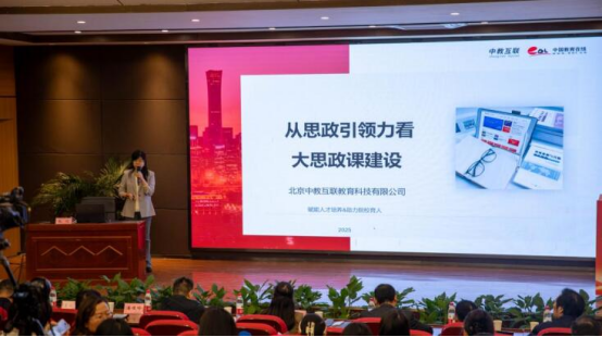 4月12日上午,中国教育在线董事、副总裁、中教互联教育科技有限公司总经理赵欣以《从思政引领力看大思政课建设》为题,从宏观层面解读了《教育强国建设规划纲要(2024—2035年)》,为大思政课建设提供了基本遵循,并从数字化资源与信息化工具的运用在微观上予以指导。