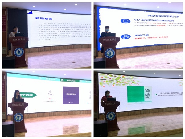 活动由课部主任姜玲教授主持,全体教职工现场观摩。“概论”、“基础”、“形势与政策”、“大学体育”、“实用英语”、“中国传统文化”等课程的多位教师立足本学期疫情防控期间在线教学工作实践,分别围绕“疫情下的‘课程思政’”教学设计共同课题进行说课交流。老师们精心准备,将疫情融入学情分析,以立德树人为己任,深入挖掘疫情防控育人元素,合理引入疫情防控典型案例,有效实施课程思政。在新冠疫情形势下“润物无声,潜心育人”,努力做到育人和育才有机统一,课程思政与思政课程同向同行。