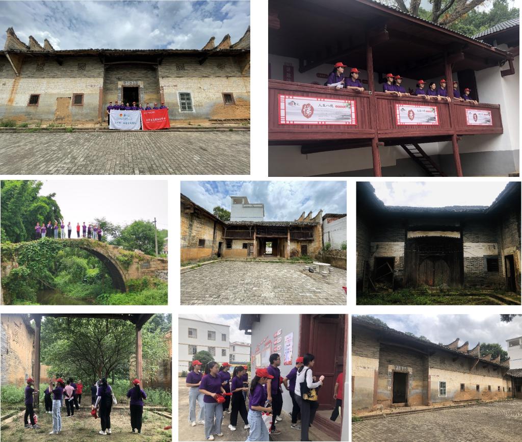 7月20日上午实践队在永安村党支部副书记朱勇带领下来到了古建筑群九井十八厅,结合专业对九井十八厅进行分析、学习当地古建筑结构及调研客家建筑特点