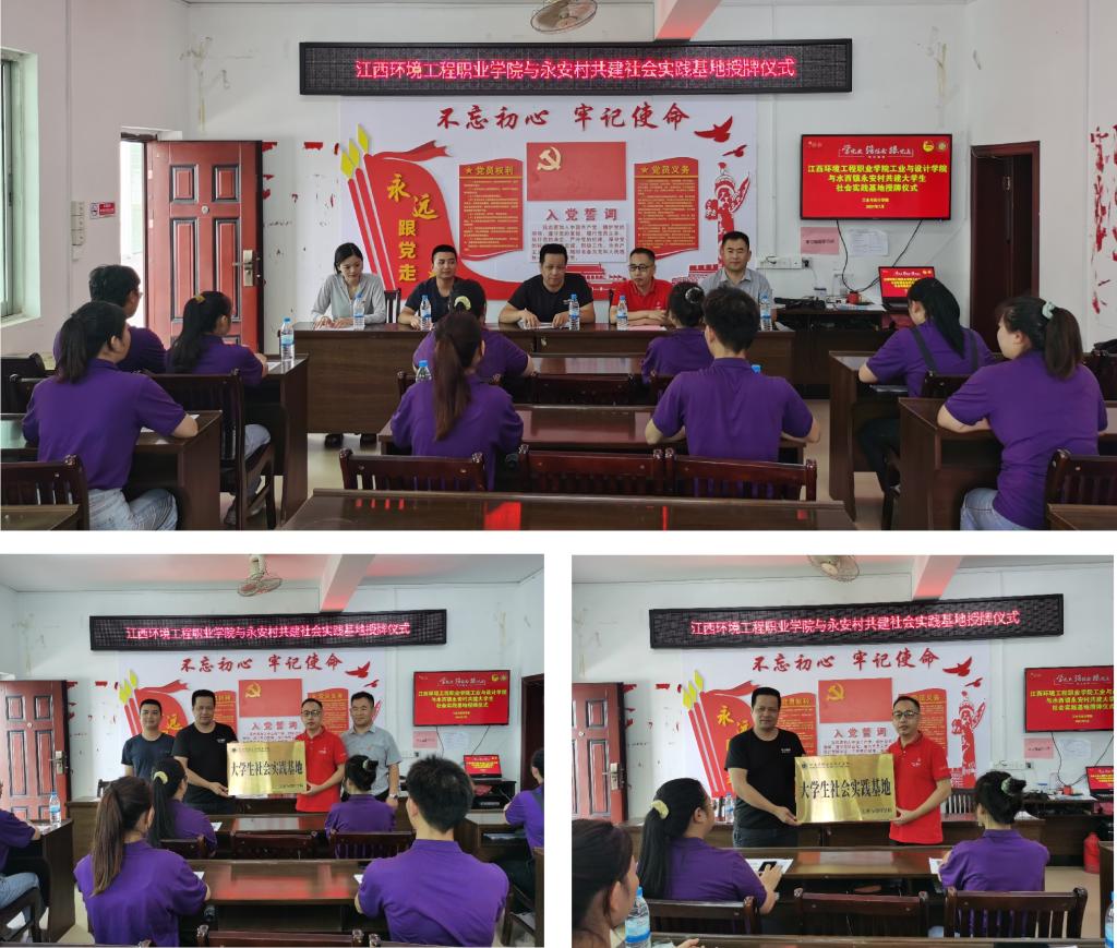7月19日上午,“三叶草”社会实践队来到章贡区水西镇永安村。在永安村党群服务中心二楼会议室举行了江西环境工程职业学院工业与设计学院与水西镇永安村共建大学生社会实践基地授牌仪式。工业与设计学院党总支副书记谭贻群、工业与设计学院团总支书记祁廷中、永安村党支部书记朱小林、永安村党支部副书记朱勇、实践队指导老师刘芳和实践队全体队员参加了启动仪式。仪式由朱勇主持。