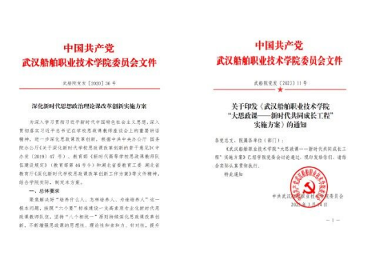 自学校“十四五”规划实施以来,该校继续纵深推进“大思政课”建设,不断开创思政工作新格局,构建了以“兴船报国育英才”为根本导向,以高质量党建为引领,以校本文化和校本特色内部质量保证体系为驱动,以项目化推行、协同化推动、诊改化推深、精品化推广相结合为抓手的“一领双驱四化”大思政育人新模式。“‘一领双驱四化’育人模式的探索与实践”入选教育部“三全育人”典型案例。