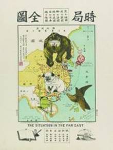 《时局图》是中国近代时事漫画的杰作。1900年,俄罗斯帝国乘八国联军侵华战争之机,出兵侵占我国东北全境。中俄两国于1902年4月8日在北京签订中俄《交收东三省条约》,规定俄国分三期从我国东三省撤军,每期6个月,18个月内撤完。1903年4月8日,为俄军第二期撤军的最后期限,俄国不但不肯撤回一兵一卒,反而向清政府提出7项无理要求,实际上是要独吞东北三省,引起中国人民的强烈反抗。